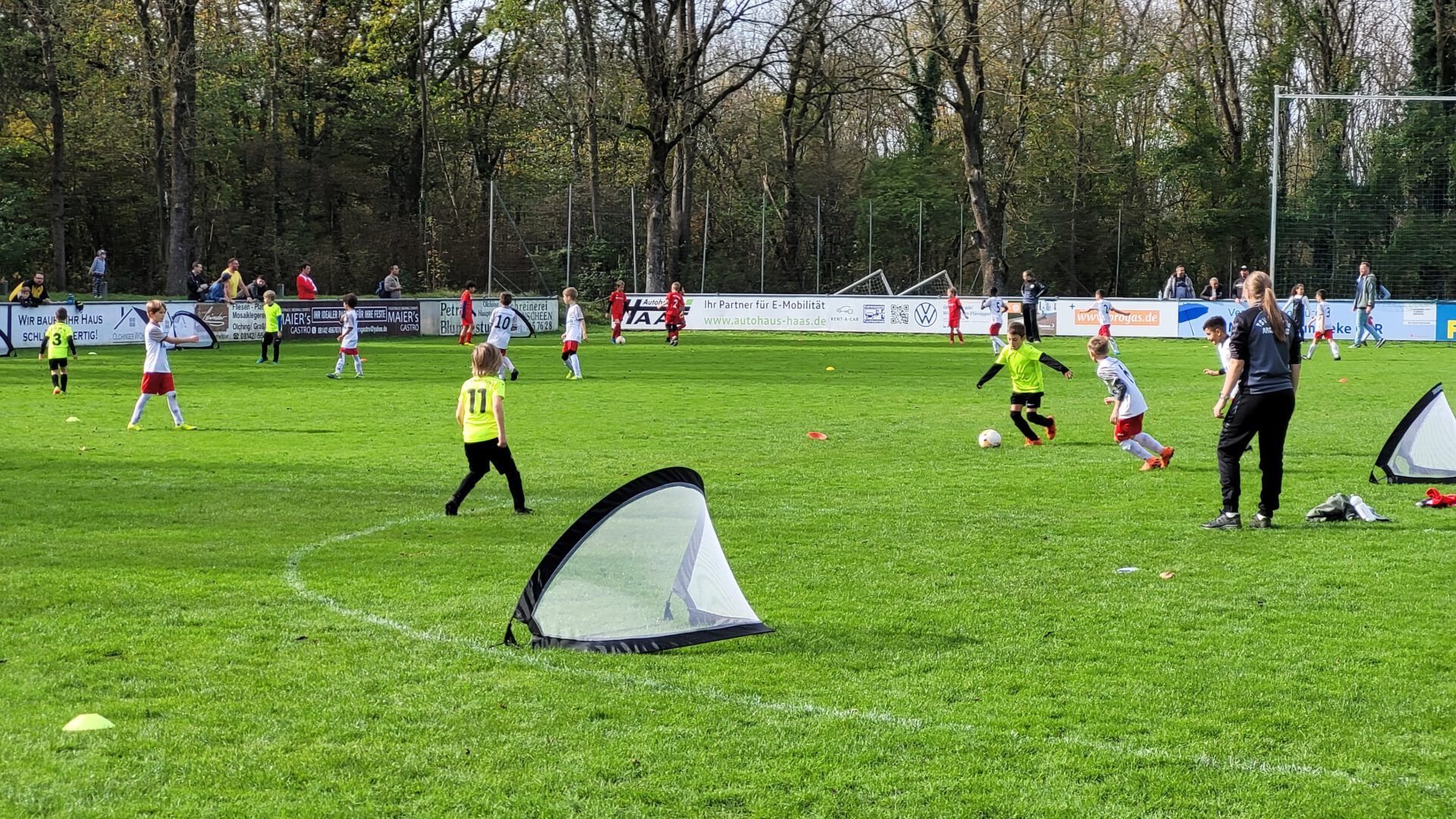 Auf neun Feldern wird parallel gespielt. Insgesamt 54 Kinder zeitgleich voll im Einsatz.